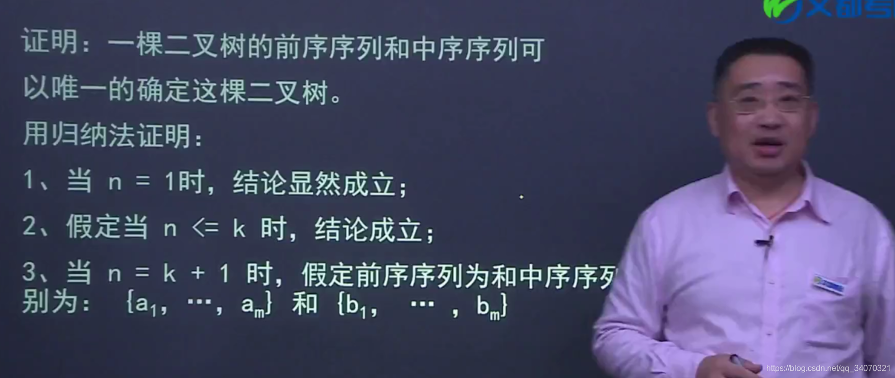 证毕。(同样的思路可以证明结点个数为n的后序遍历序列和结点个数为n中序遍历序列可以唯一确定一颗结点个数为n二叉树)