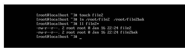 6、在root家目录创建文件file1在/下创建硬链接文件也为file1