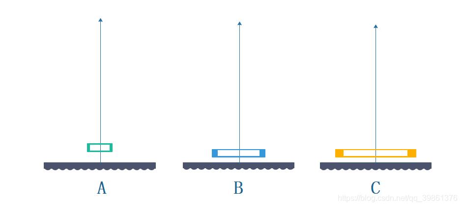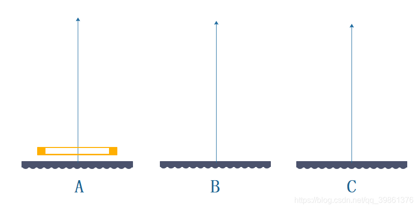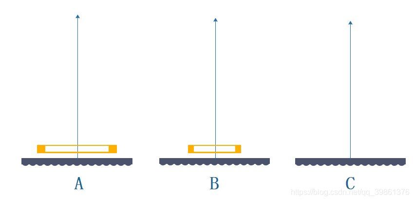 1.首先是一个盘子,即A塔上有1个盘子的情况(Emmm,画图水平有限,仅限说明问题);