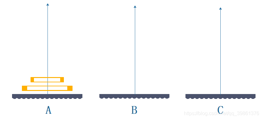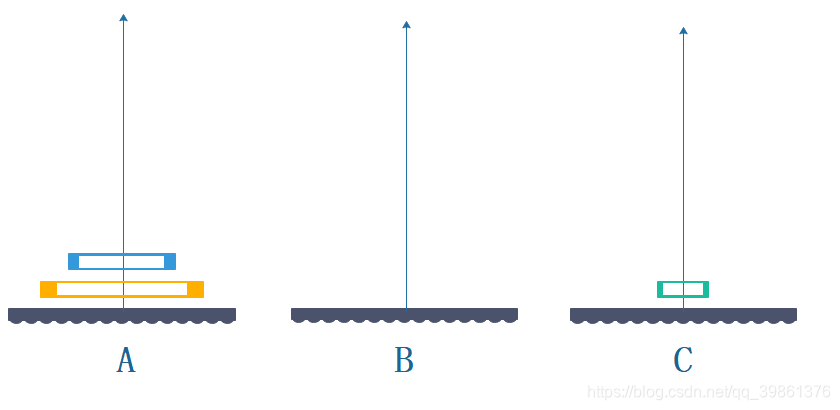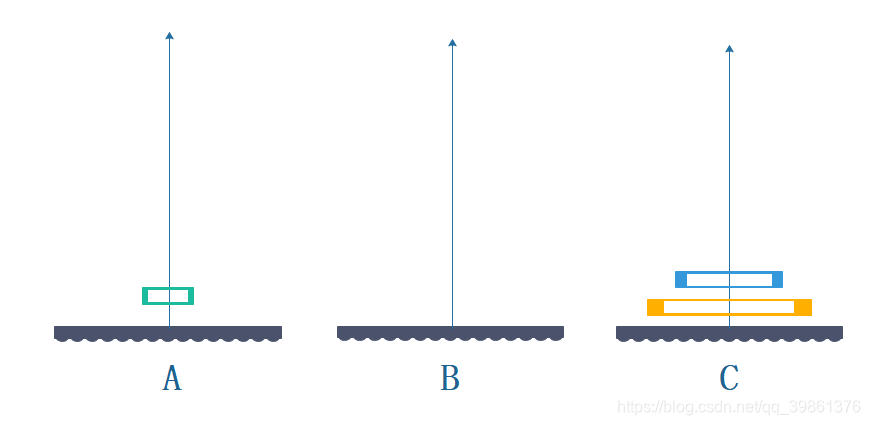 要想解决两个盘子的情况要先解决n-1即1个盘子的情况。