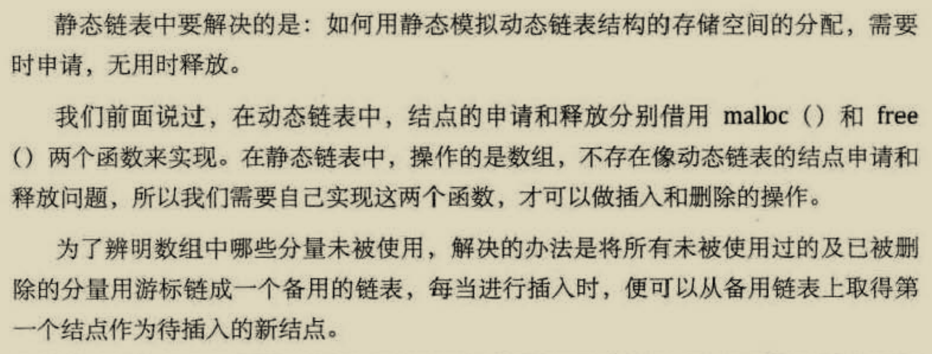 - 未被使用的数组元素作为备用链表,相当于空闲可用空间