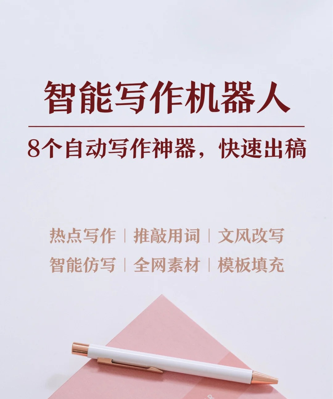一款内容创作AI辅助工具,帮助我们高效写作,包含智能写作、智能推荐素材、稿件改写、稿件查重、稿件纠错等一些很实用的小功能