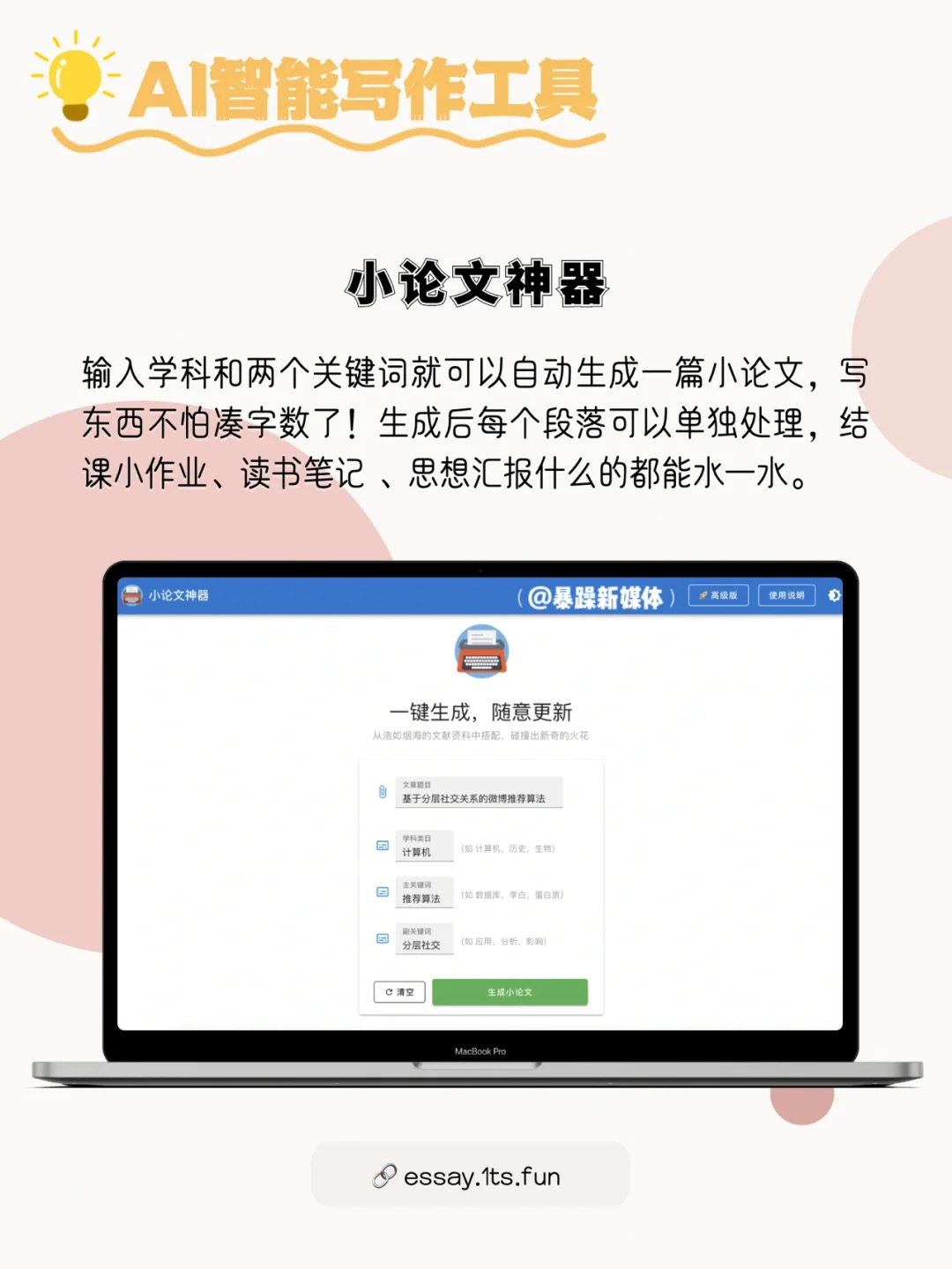 给大家推荐几个AI自动写作的素材网站,可以帮助我们适当提升写作效率,也可以用来当作写作的参考,多利用工具并不就是偷懒。