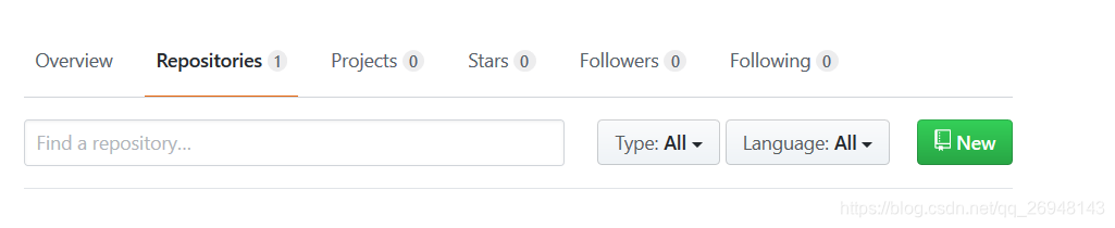 1) 在页面右上角会有你的头像,点击—>点击 Your repositories, 出现如下图所示