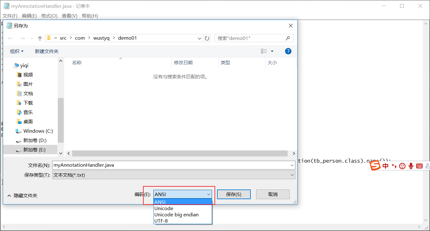 方法二:记事本打开java源文件,另存为选择ANSI编码