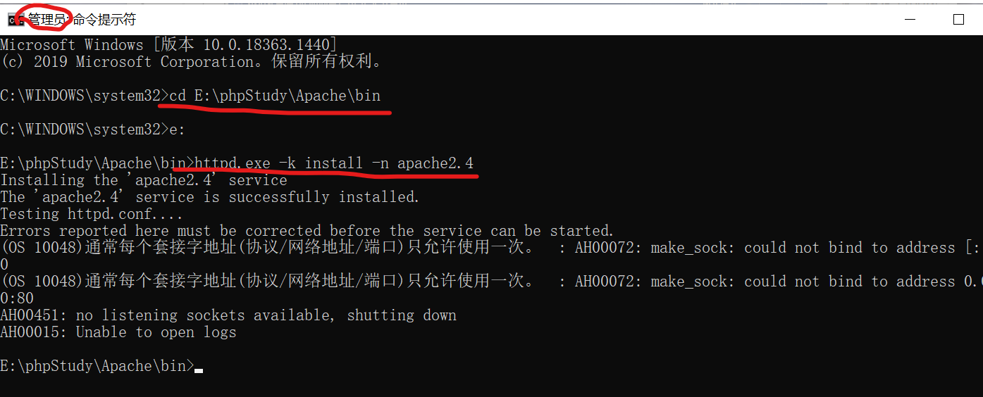 方法一:官网下载网页安全狗3.5,安装之前打开phpstudy,然后管理员进入cmd,进行如下操作: