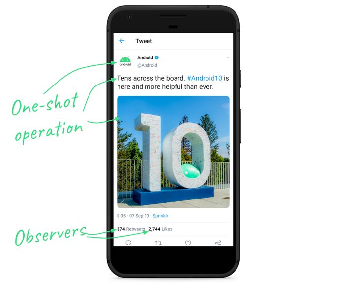 在进入具体的操作实践环节之前,我们需要区分一下两种操作: 单次 (One-Shot) 操作和监听 (observers) 操作。比如 Twitter 的应用: