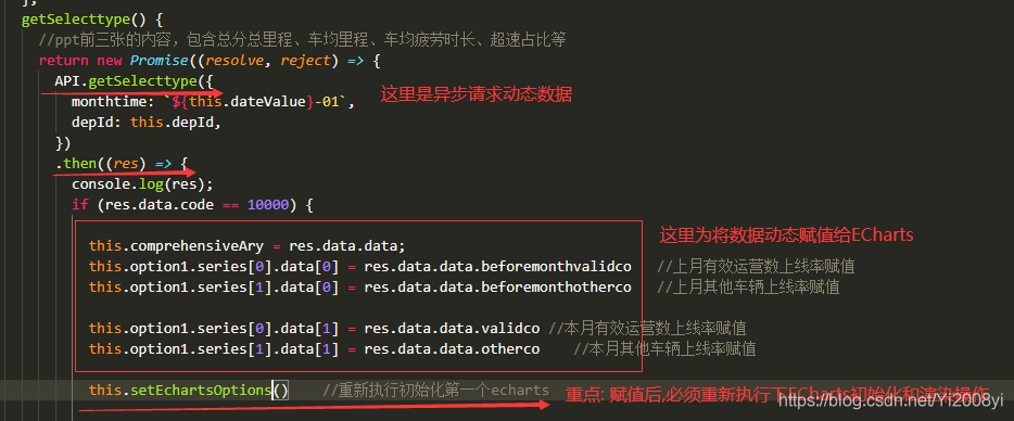 2-3-4: 定义异步获取动态数据方法和对应的ECharts动态赋值,重新渲染操作.
