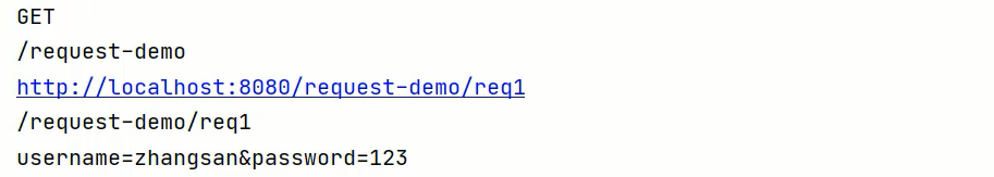 启动服务器,运行访问http://localhost:8080/request-demo/demo2 ,得到运行结果: