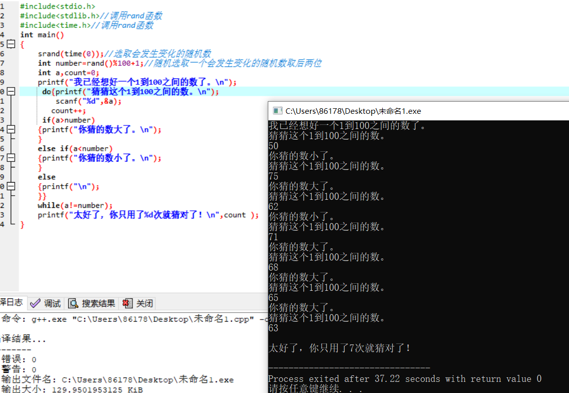 printf(“太好了,你只用了%d次就猜对了!\n”,count );