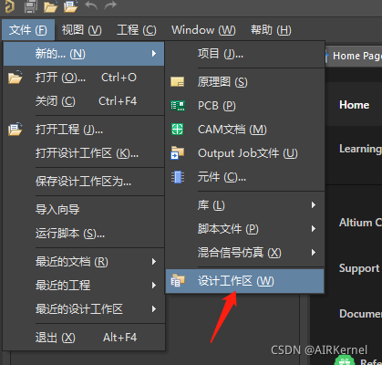 1、创建一个新的设计工作区 文件->新的->设计工作区