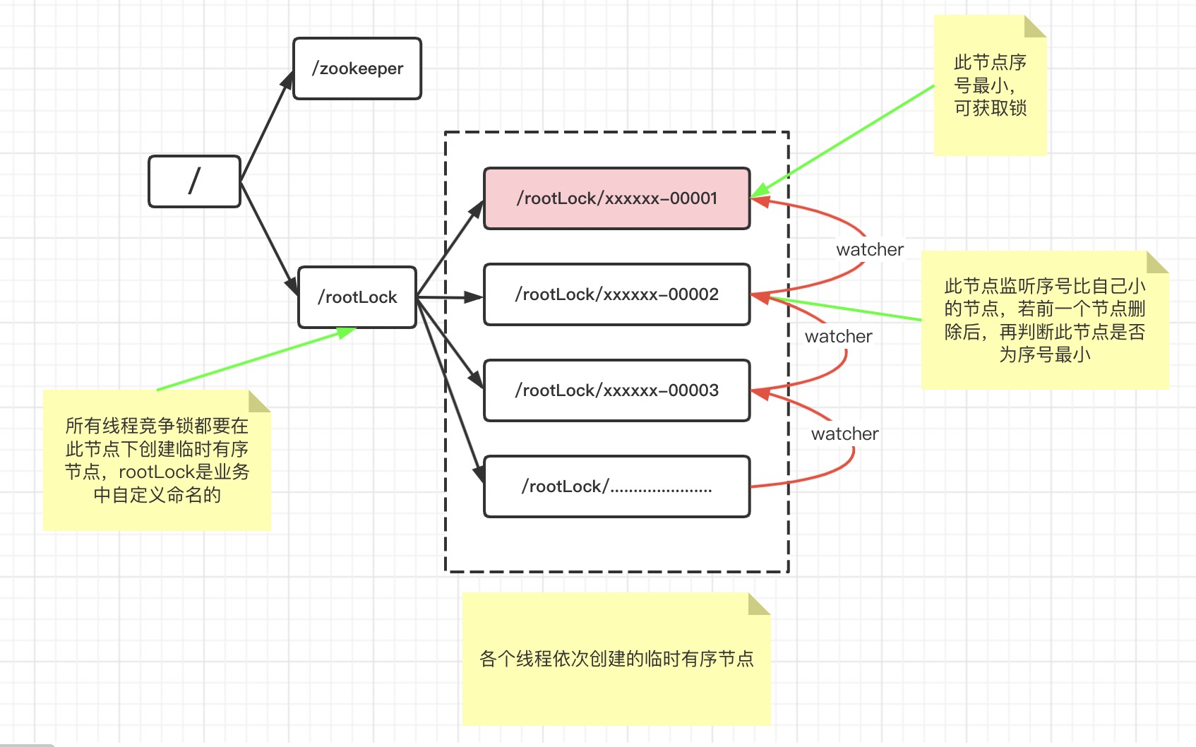 zookeeper实现分布式锁的原理就是多个节点同时在一个指定的节点下面