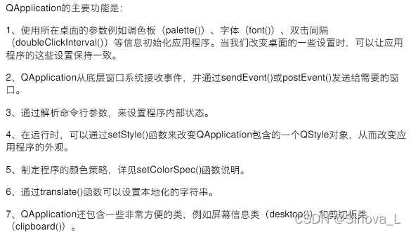 QApplication负责管理GUI程序的控制流和主要设置。其包含窗口系统和其他来源处理过和发送过的主要事件循环。它也处理应用程序的初始化和首位工作,并提供对话管理。QApplication可以对系统和应用的大部分设置项进行设置。