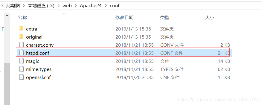 Apache的配置文件则是conf目录下的httpd.conf文件,将其打开: