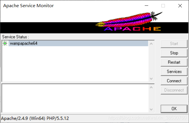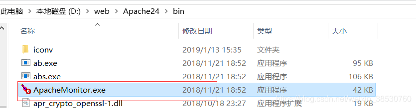 安装完成后 在bin目录下找到Apachemonitor.exe,启动后 在右下角有个小标识,打开服务即可。
