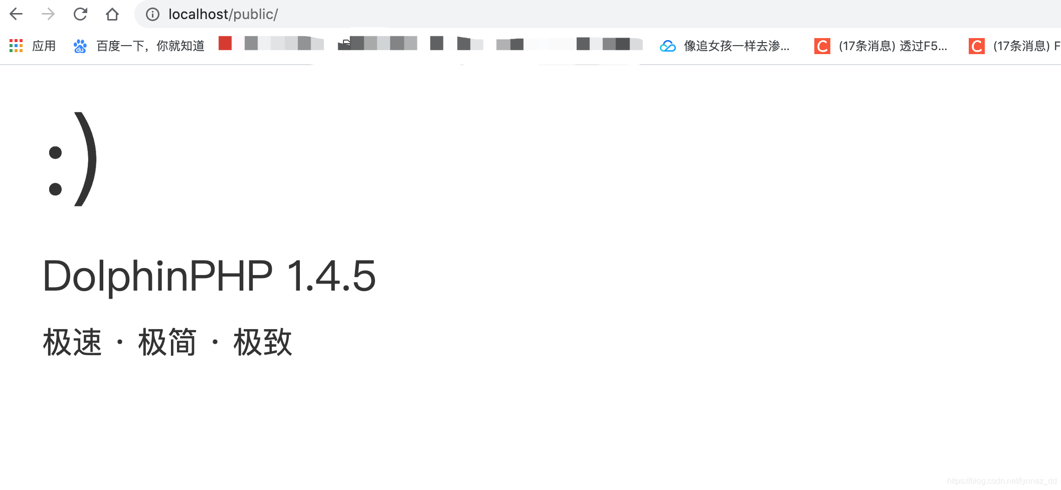 ,此处路径与应用部署路径有关,核心解决方案在于将step2直接改成step3,直接回车,即可省去环境检测,成功进入下一步开始安装。再访问localhost/public时会直接进入前台页面。