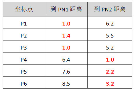 - 第三步,分别计算每个点到每个质心之间的距离,并将每个点划分到离最近质心的小组,跟定了那个质心。