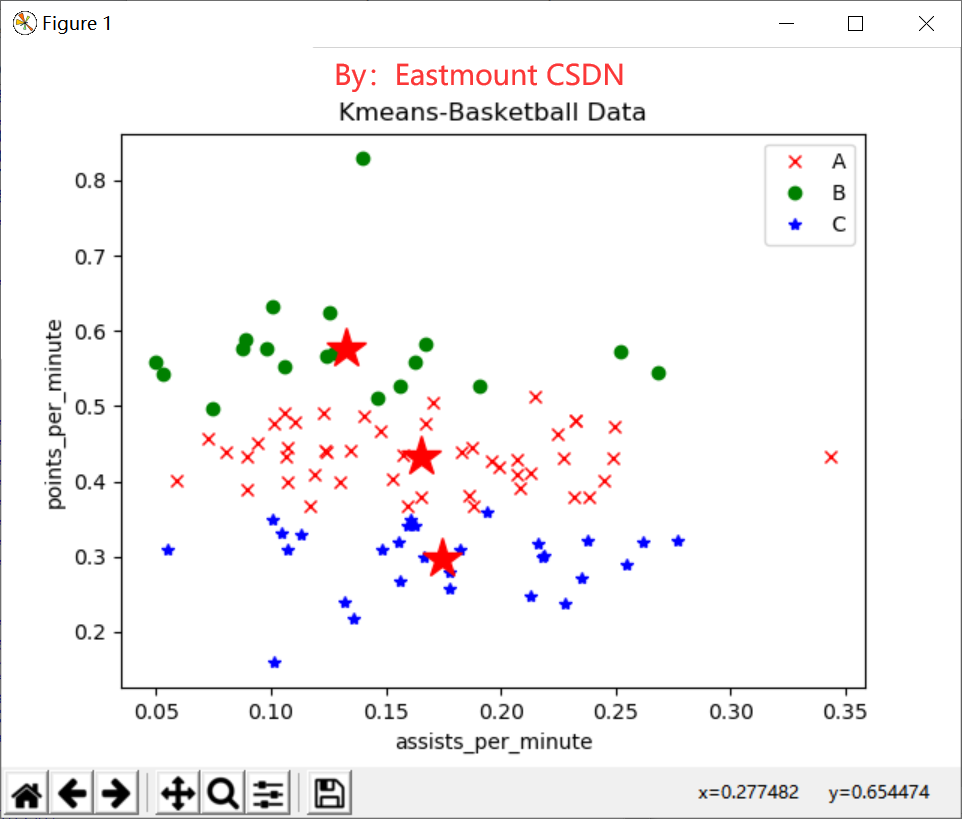 Mini Batch K-means是KMeans的一种变换,目的为了减少计算时间。其实现类是MiniBatchKMeans。Sklearn包中调用方法如下: