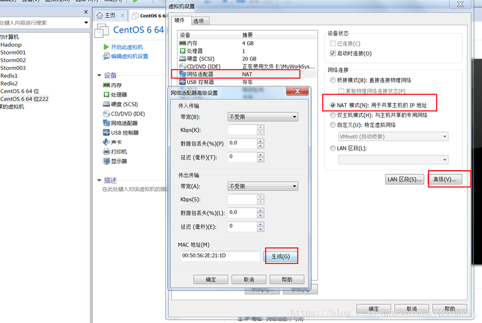 第三步:更改我们虚拟机的mac地址(右键—设置—-网络适配器—–高级—–生成)