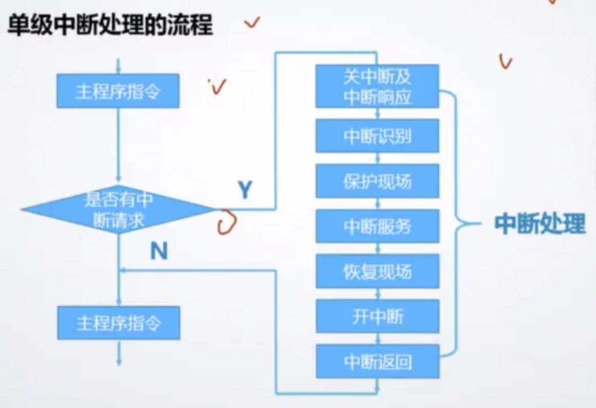 中断处理:读取中断源的中断号,完成中断申请与中断响应的握手过程。标志位的处理与断点保存:处理器获得外部中断源的中断号后,保存断点(返回地址) , 关闭中断保护现场。