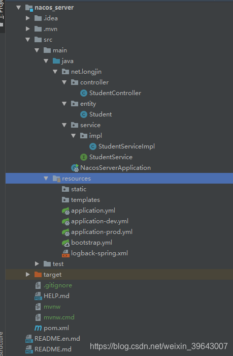 1.继上一篇文章中写到nacos在linux环境下的安装使用,本篇文章写到nacos在实际项目中的应用,首先我们建两个springBoot项目为nacos_server 、nacos_client 这里不多介绍怎么去创建项目了 先看下两个项目整体构成: