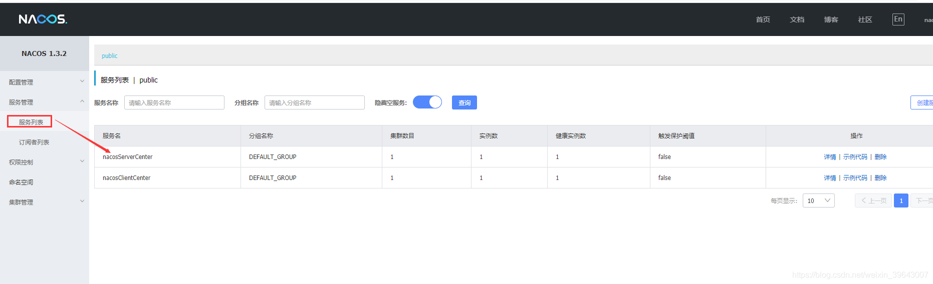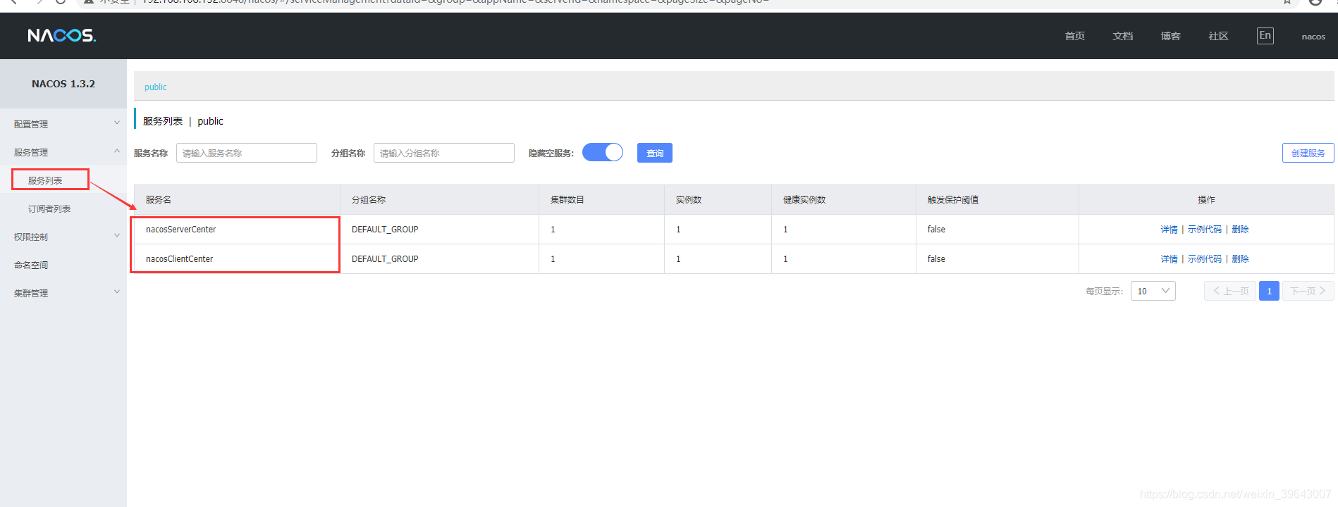 11.启动nacos_server项目后 登录nacos发现nacos_server注册到注册中心了 如下: