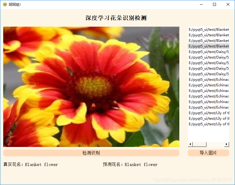 该项目是基于Keras的VGG16模型微调实现的深度学习花朵识别检测系统,使用Python语言中的cv2和numpy库对图像进行预处理,使用keras的ImageDataGenerator进行数据增强,采用Pyqt5实现功能的可视化,方便用户对图片进行检测。在实验过程中,发现当数据集较小,很难在一个新的网络结构上训练出具有很高准确率的模型,可以借助预训练网络模型(即已经训练好的网络模型,如VGG16)。我们利用自己的数据集来重新训练这些模型的分类层,就可以获得比较高的准确率。在此基础上该模型调参优化得到了98%以上的准确率验证了微调模型有助于训练小样本模型。
