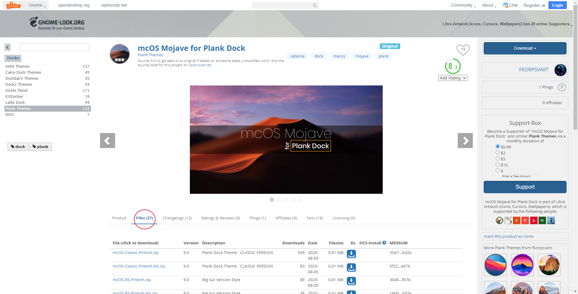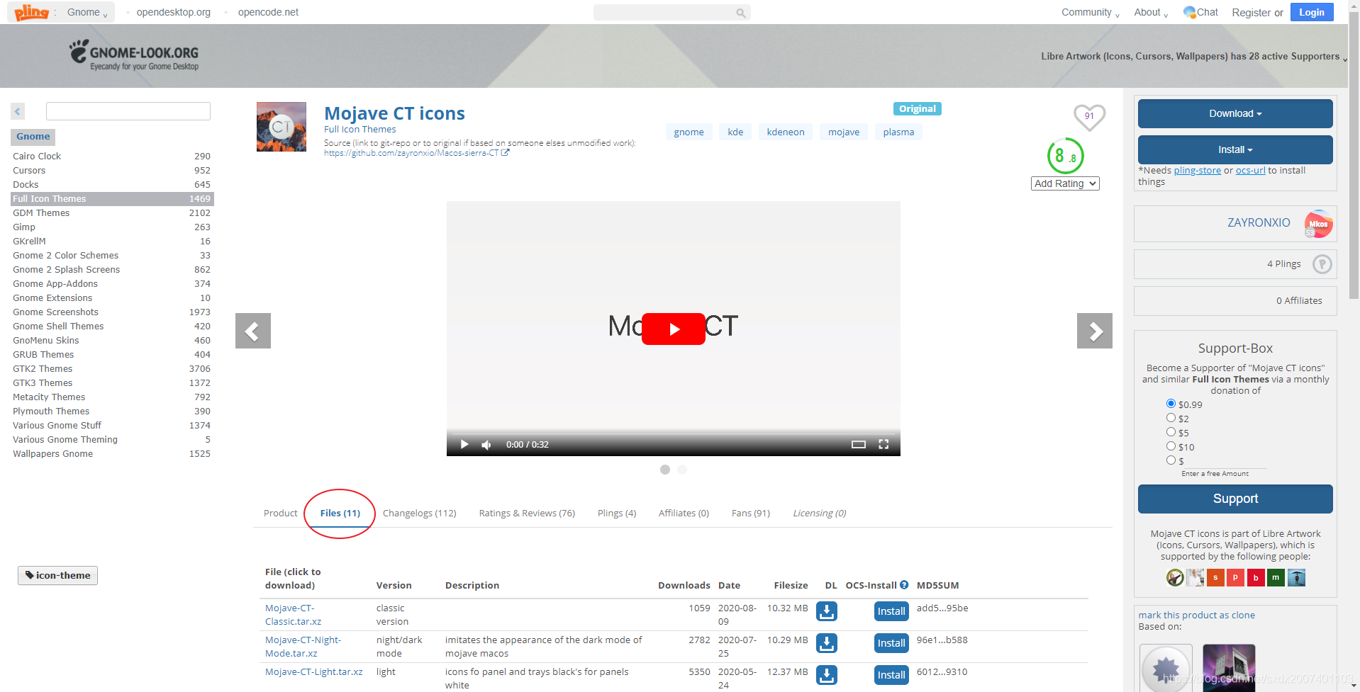 ,点击files选择要下载的图标,我随波逐流选最多的Mojave-CT-Light.tar.xz。下载有点慢,稍等即可。