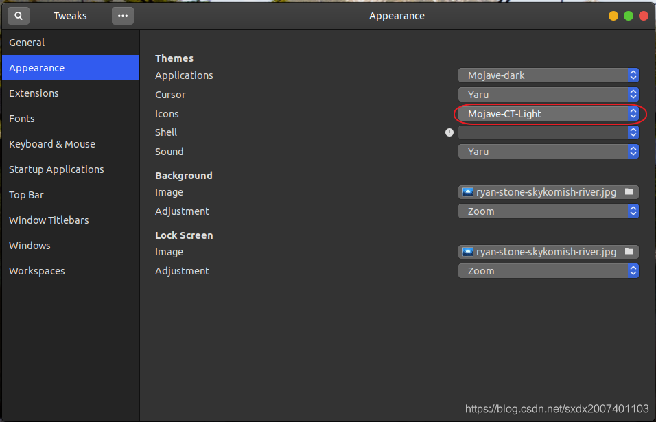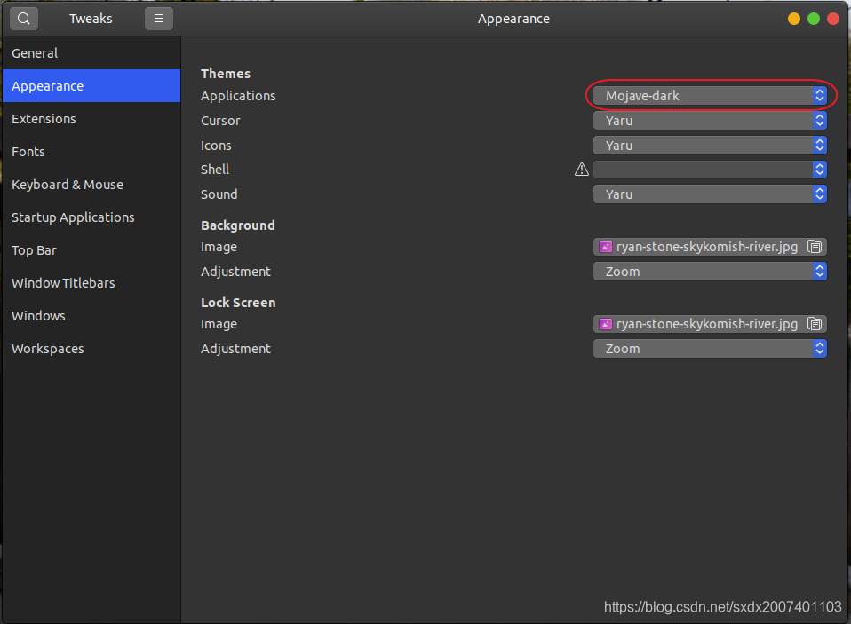 在Tweaks中Appearance(我的是英文版,请自行对照)中Applications选择该主题: