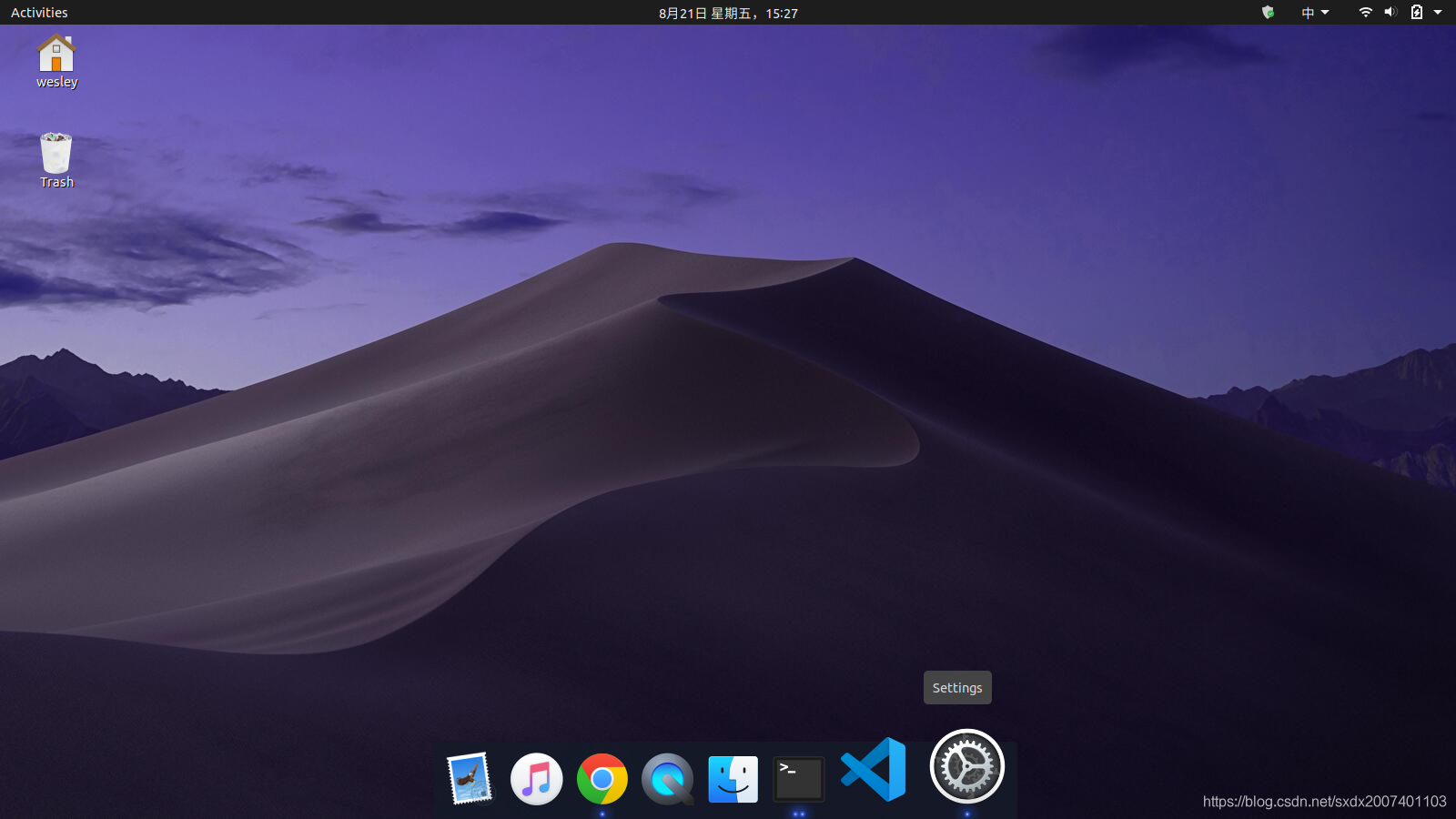 然后登出当前用户再登入,左侧的Panel就没有了。打开plank应该发现所有图标已经在屏幕下部了。下面我们自定义Panel。