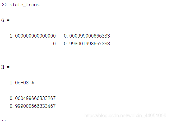 在simulink仿真过程中,我们需要G和H为已知的矩阵,当T固定时就可以求出G和H的具体数值了,这是需要用到