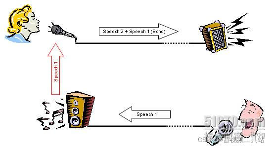 本图是网上找的,我觉得比较有形象,图中的男子说话,语音信号(speech1)传到女士所在的房间,由于空间的反射,形成回音speech1(Echo)重新从麦克风输入,同时叠加了女士的语音信号(speech2),此时男子将会听到女士的声音叠加了自己的声音,影响了正常的通话质量。此时在女士所在房间应用回音抵消模块,可以抵消掉男子的回音,让男子只听到女士的声音。