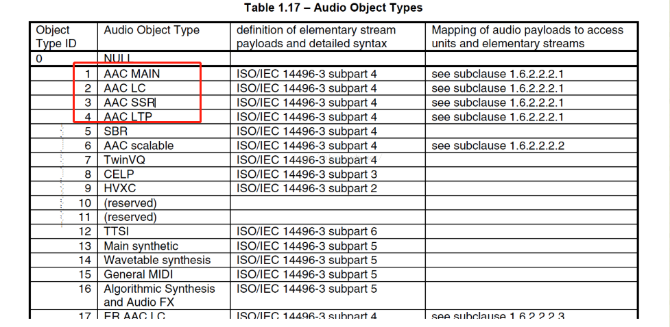 profile的值等于 Audio Object Type的值减1,即是profile=Audio Object Type – 1;
