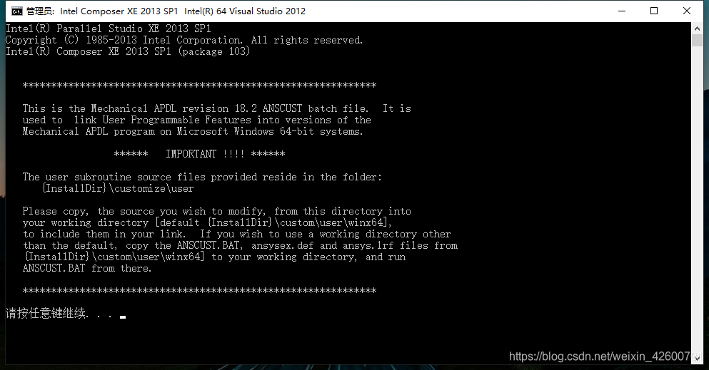 1. Visual Studio 2012为ANSYS二次开发的编译器,Fortran为ANSYS二次开发的主要语言。三者的安装顺序可以为Visual Studio→Fortran→ANSYS,也可以为ANSYS→Visual Studio→Fortran,总之,Visual Studio要在Fortran之前安装。