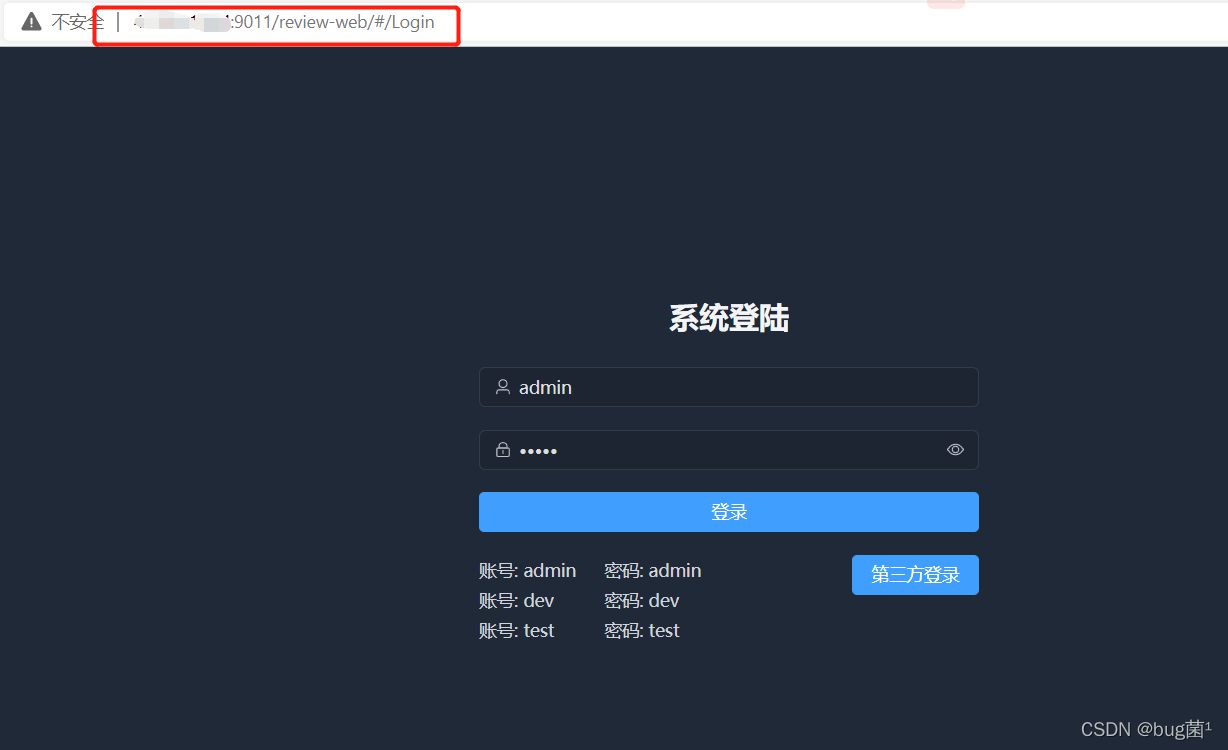 直接在浏览器中输入http://ip:port/xxx 即可,如果成功跳转页面(前端项目页面这你肯定是知道的吧),则表示服务器部署前端项目就已大功告成。比如我的:http://10.10.10.10:9011/review-web/#/Login,即可访问到我的Vue项目。