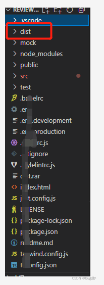 如下就是已经打包成功了的项目结构截图,可以看到dist文件夹位于项目根目录下。