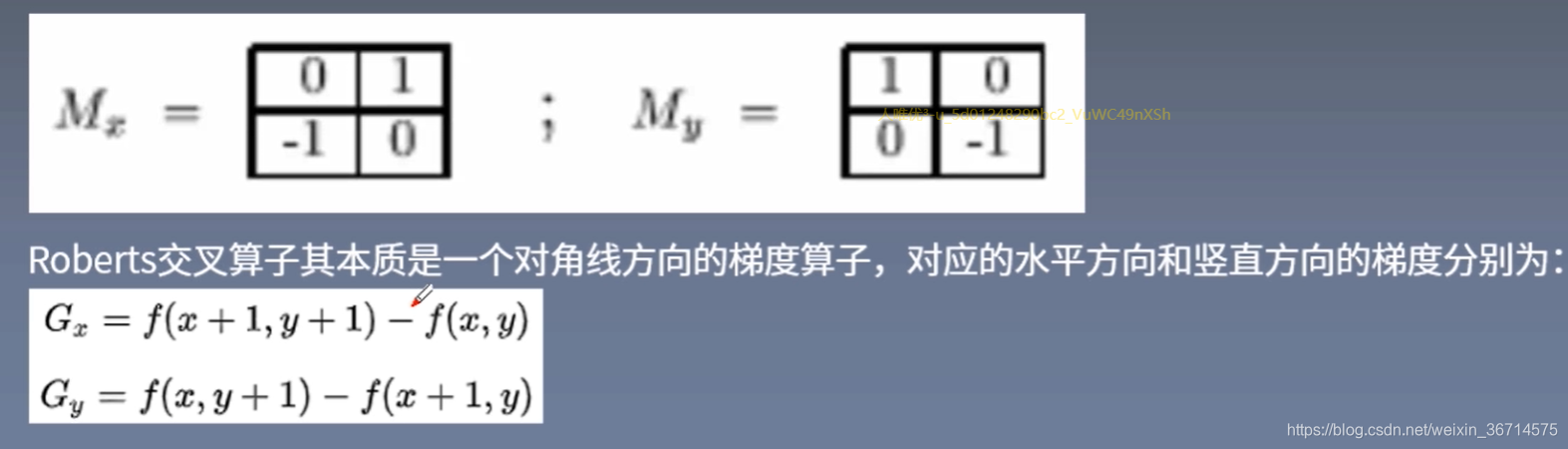 缺点:没有描述水平和竖直方向的灰度变化,只关注了对角线方向,容易造成边缘的遗漏;鲁棒性差,因为点本身参与梯度的计算,不能有效抑制噪声的干扰。