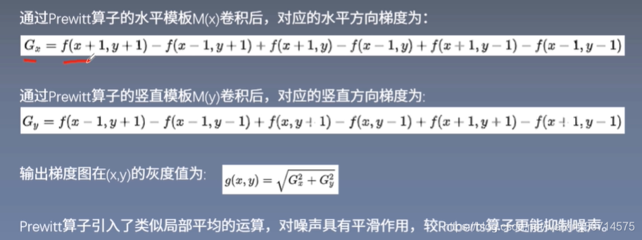 Prewitt算子引入了类似局部平均的运算,对噪声更有平滑作用,可以抑制噪声。