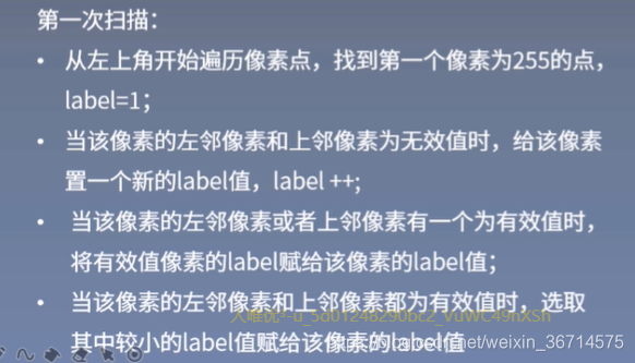 连通区域:一般指图像中具有相同像素值且位置相邻的前景像素点组成的图像区域。连通区域分析是将图像中各自联通区域找到并且标记。