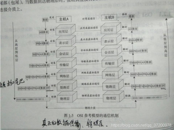 整个通信过程都必须经过一个自上而下(发送方),或自下而上(接收方)的数据传输过程,但通信必须在双方对等层次进行