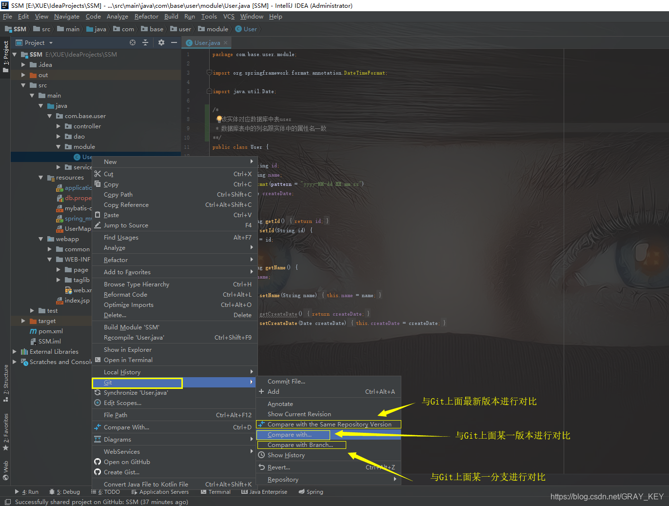 2、本地项目中某文件 与 GitHub上面的版本进行 对比