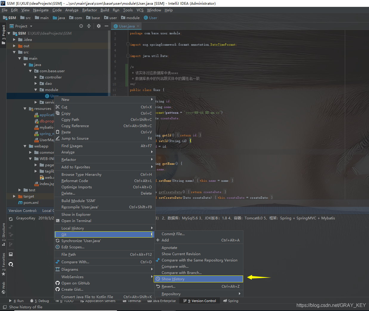 3、查看本地项目中某文件的历史记录(提交或修改)