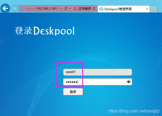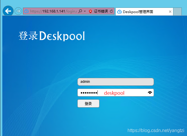 浏览器进入 Deskpool 管理后台 。 账号是: admin  密码 deskpool