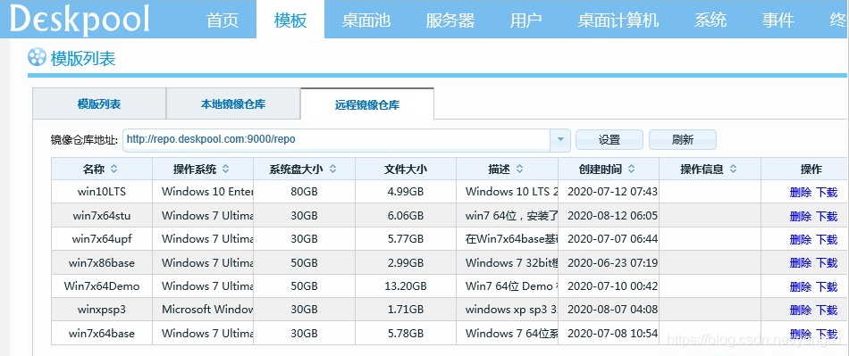 Deskpool V3.3 的Hyper-V版本增加了模板仓库功能,支持在线下载模板库。 省略了繁琐的模板制作过程。对于桌面云的初学者搭建桌面云系统非常友好。