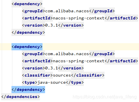 用于匹配dependency引用的最小信息集实际上是{groupId,artifactId,version,type,classifier},然而多数情况下,这些依赖关系将引用的通常是没有classifier的jar依赖。所以我们不需要补充type和classifier信息,因为