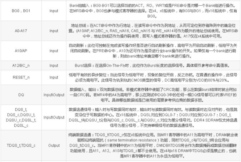 DDR4信号引脚功能