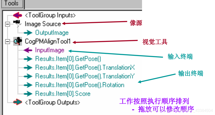 作业下存在像源 (拍照等) 视觉工具{输入和输出} 注意箭头的方向决定输入还是输出;