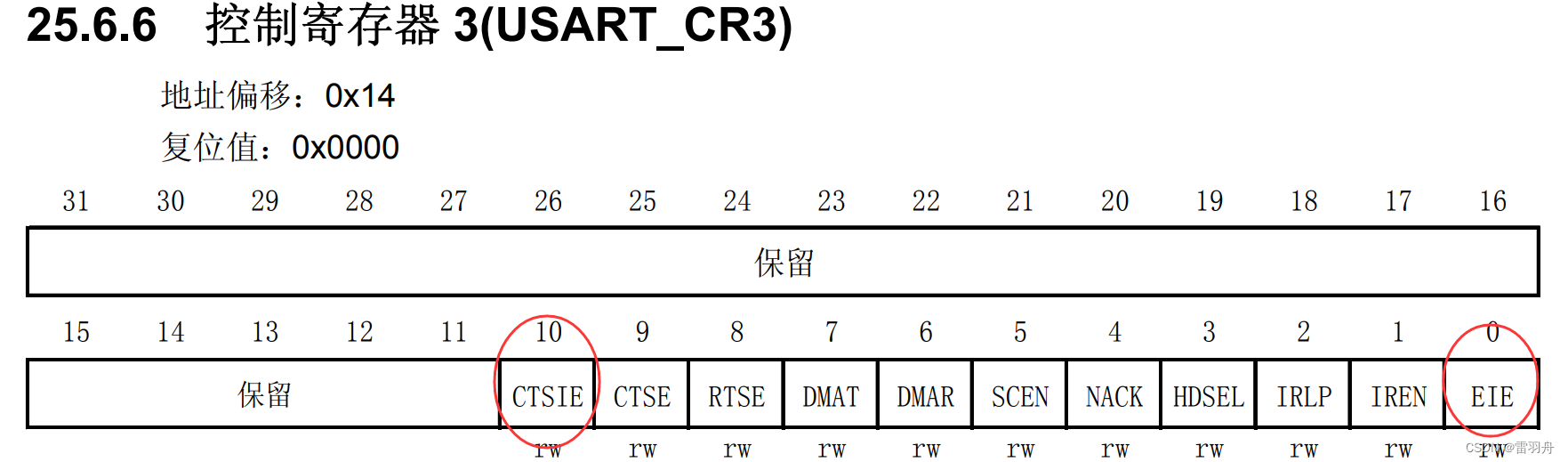 注意在CR3寄存器中,ORE(过载错误)、NE(噪声错误)、FE(帧错误)均由bit0 EIE(可以理解为ERR)表示。