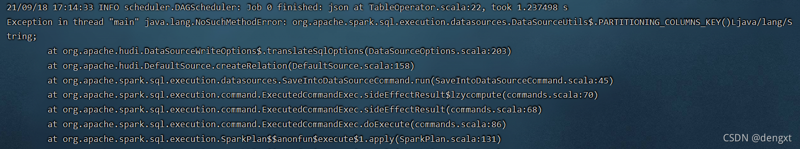 Exception in thread “main” java.lang.NoSuchMethodError: org.apache.spark.sql.execution.datasources.DataSourceUtils$.PARTITIONING_COLUMNS_KEY()Ljava/lang/String;