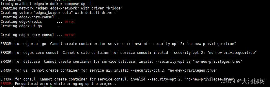 虚拟机里安装centos7.5系统安装2.x版本的edgexfoundry时报错invalid –security-opt 2: “no-new-privileges:true”